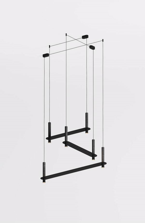 The lighting object reunites in a new kind of relationships, the beauty of geometry and the roughness of rock into an aesthetically audacious and poetic form.